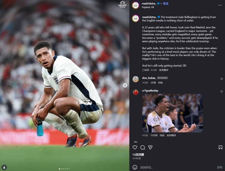 英格兰媒体对贝林厄姆的态度完全不公平。