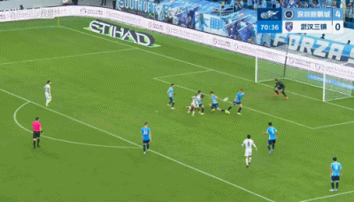 各吃一黄!贝维斯破门后推倒新鹏城门将抢球,姜至鹏出头把他撞翻