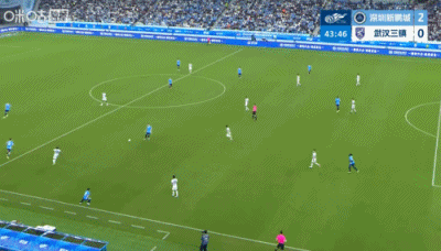 比赛第44分钟,南松右路传中,韦斯利抢点过程中倒地,皮球打在他的背上弹进球门。深圳新鹏城3-0领先武汉三镇。